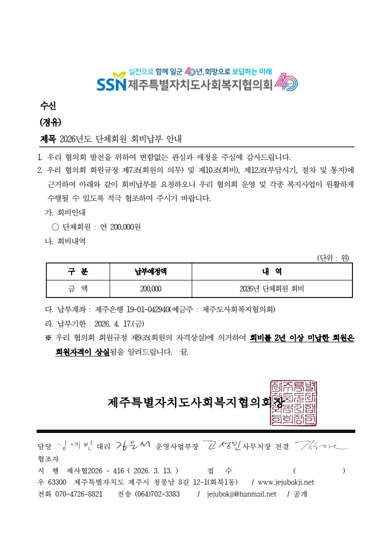 2026년도 단체회원 회비납부 안내