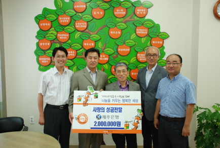 제주은행에서 후원금 2,000,000원을 기부해 주셨습니다.