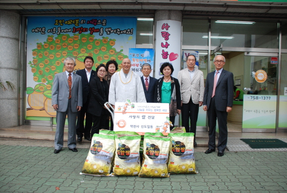 약천사 신도여러분들께서 쌀 400kg을 기부해 주셨습니다.