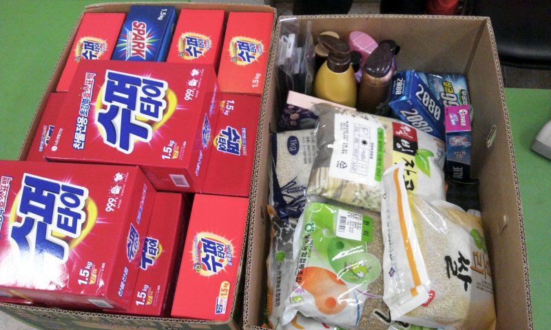 존샘봉사회에서 생필품을 지원해주셨습니다