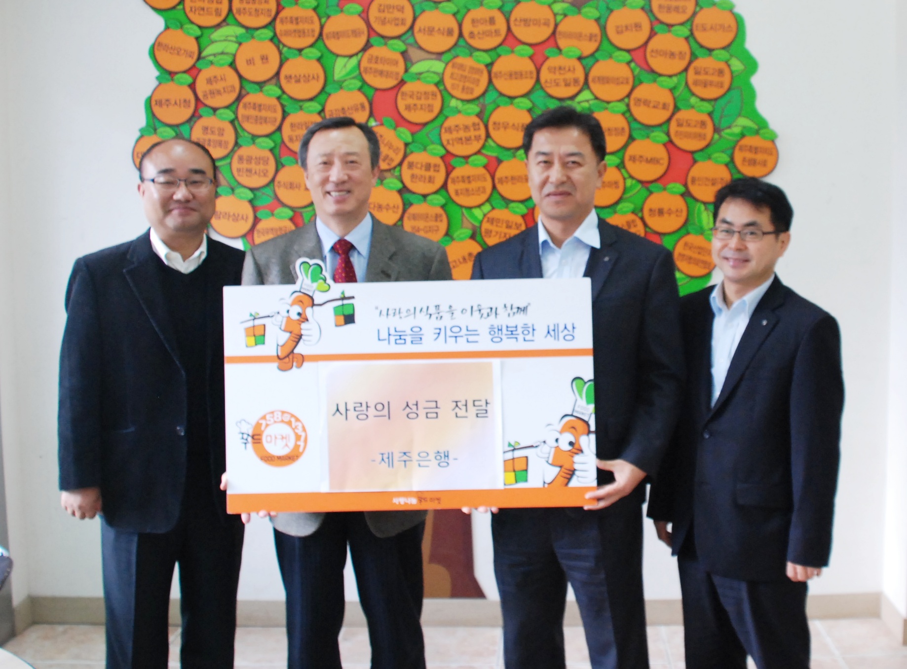제주은행은 매년 사랑나눔 푸드마켓에 후원금을 전달하는 등 이웃사랑을 실천하고 있는 기업입니다.