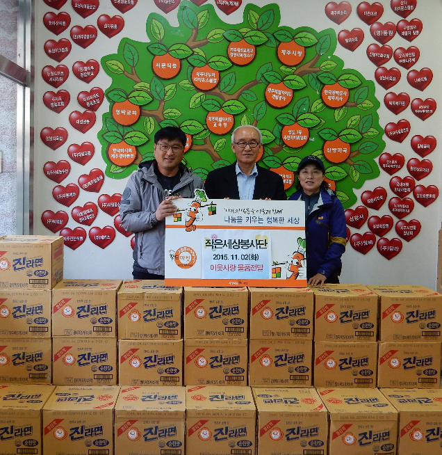 작은세상봉사단에서 50만원상당 라면 29박스를 기탁해주셨습니다.