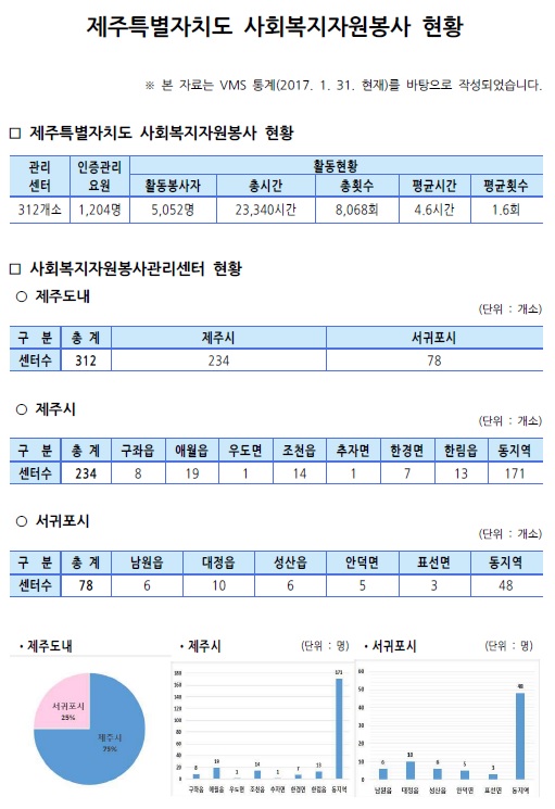 제주특별자치도 자원봉사현황(2017. 1. 31. 기준)