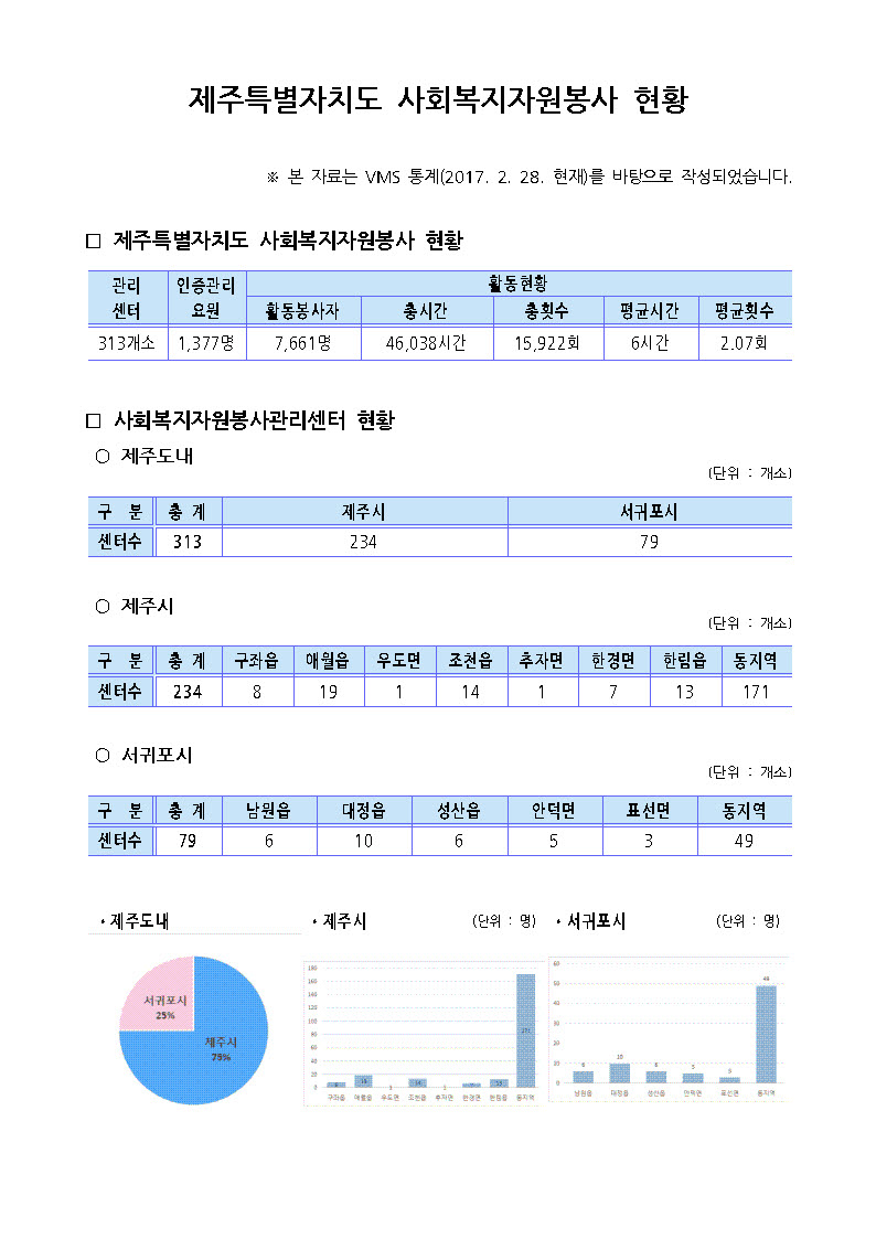 제주특별자치도 자원봉사현황(2017. 2. 28. 기준)