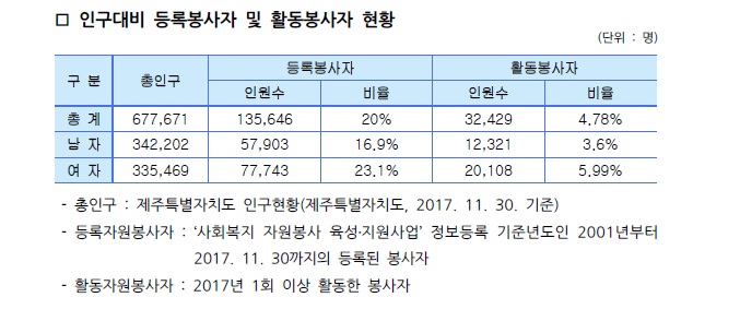 제주특별자치도 자원봉사현황(2017. 11. 30. 기준)