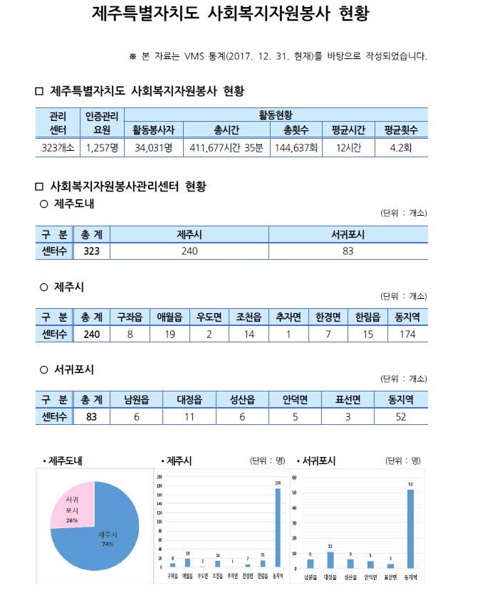제주특별자치도 자원봉사현황(2017. 12. 31. 기준)