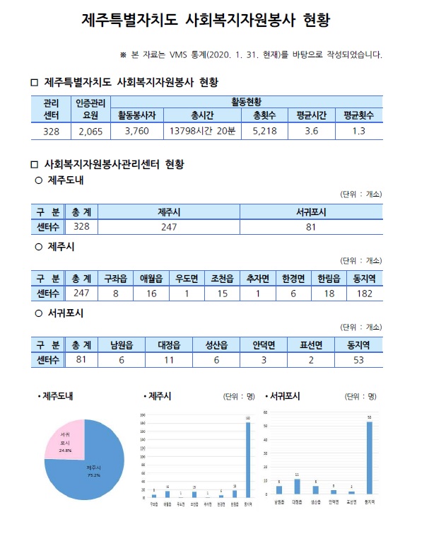 제주특별자치도 자원봉사현황(2020. 1. 31 기준)