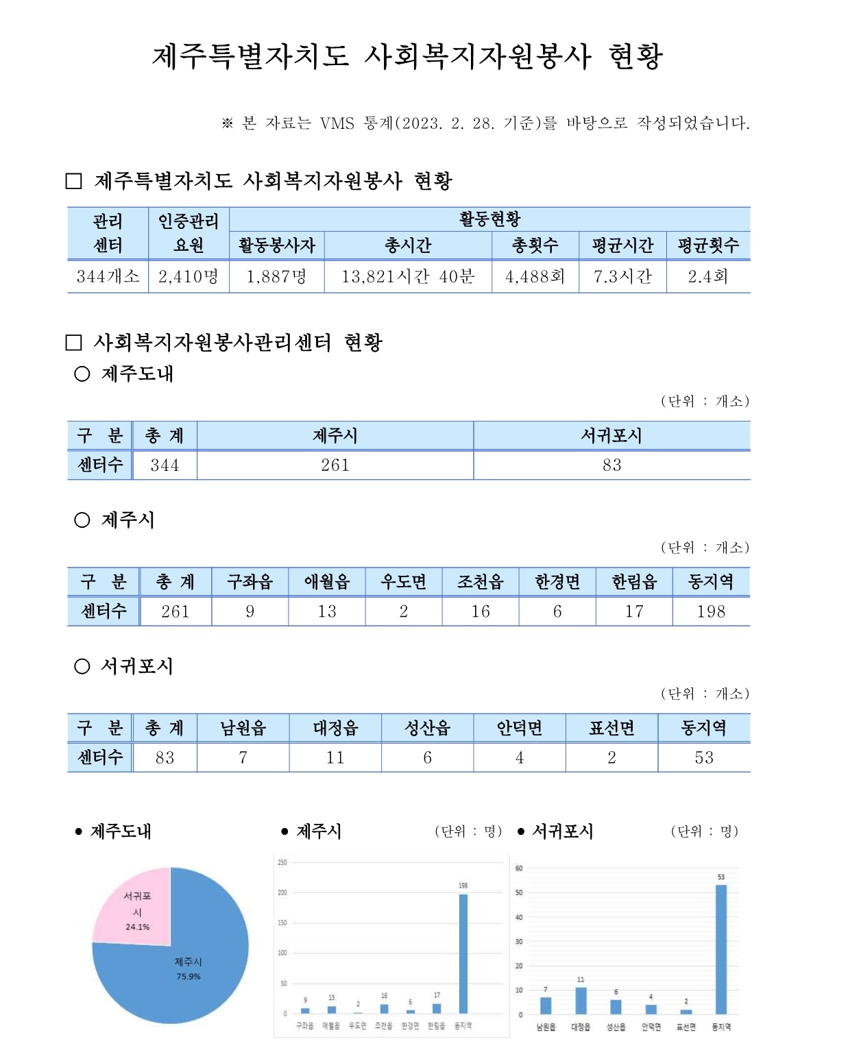 제주특별자치도 자원봉사현황 (2023. 2. 28. 기준)