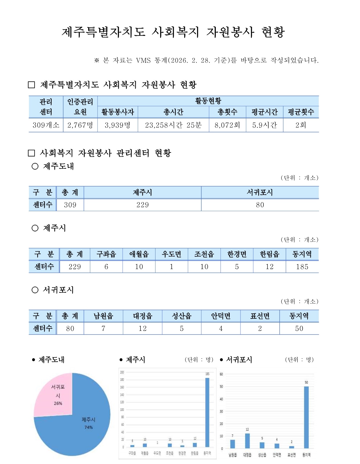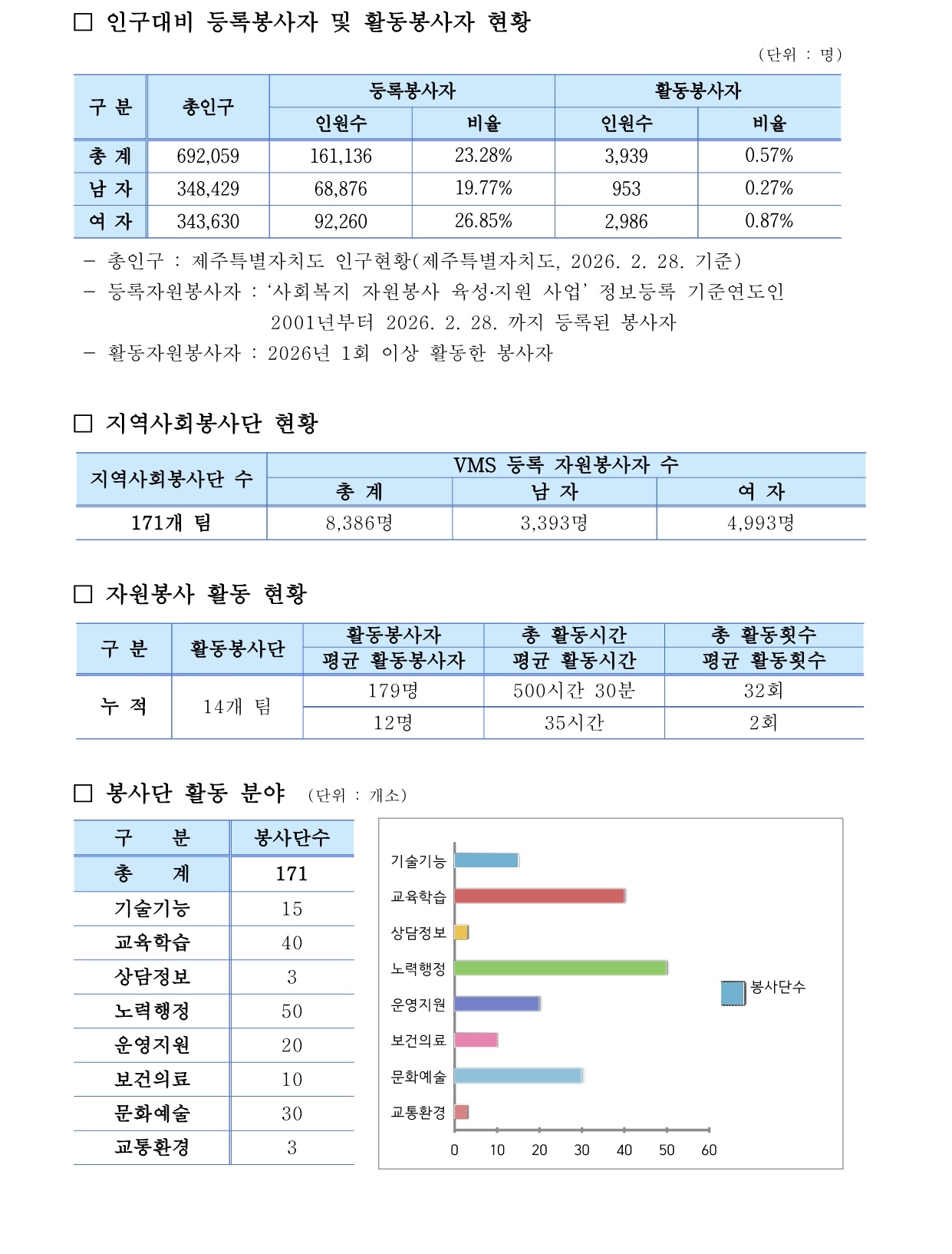 제주특별자치도 자원봉사 현황 (2026. 2. 28. 기준)