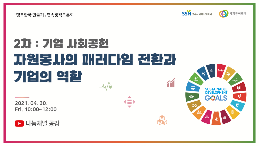지난 4. 30(금) 한국사회복지협의회에서 진행된 「행복한국 만들기- 2차」 토론회 영상 공유해 드립니다.