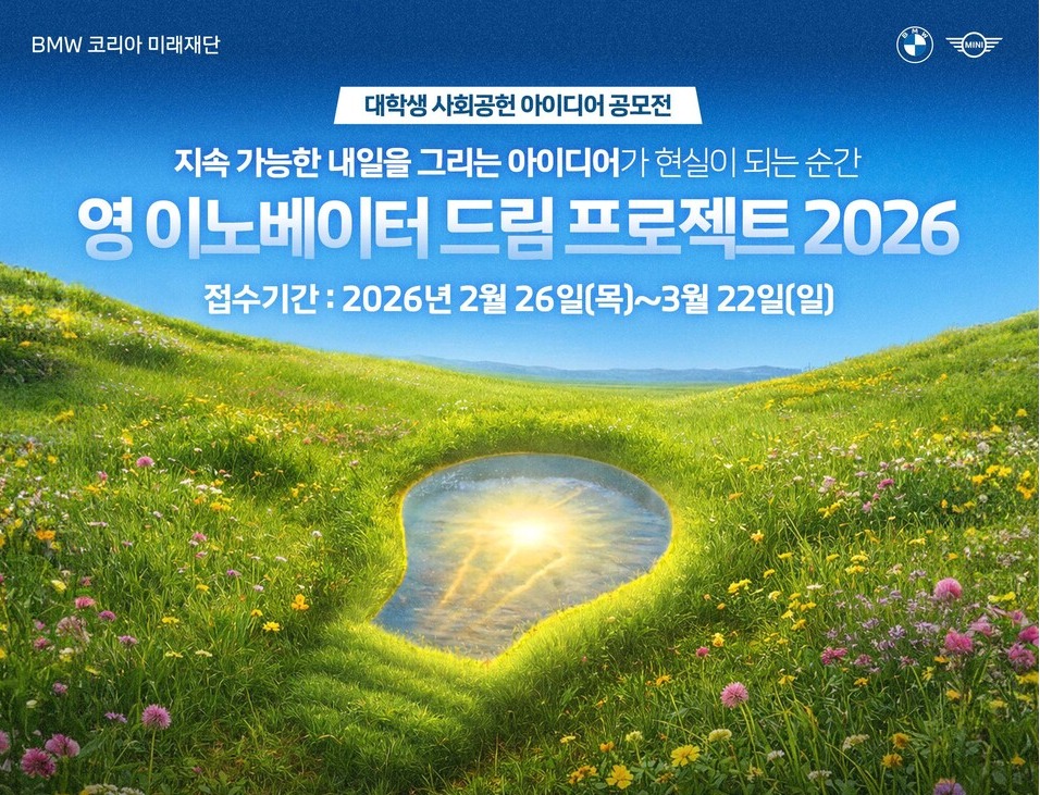 BMW 코리아 미래재단이 대학생 대상 사회공헌 아이디어 공모전 '영 이노베이터 드림 프로젝트'를 개최하고 다음달 22일까지 참가 신청을 받는다고 26일 밝혔다.