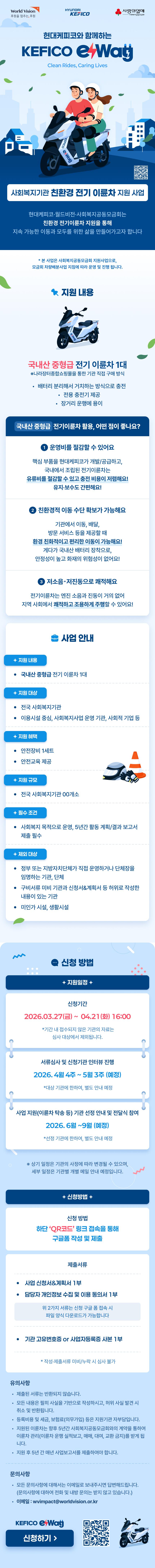 사회공헌공모 [월드비전] 사회복지기관 전기이륜차 지원사업 'KEFICO e-Way : Clean Rides, Caring Lives'