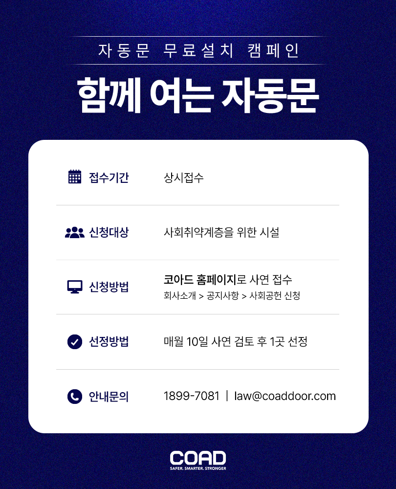 코아드 자동문을 두드리세요!